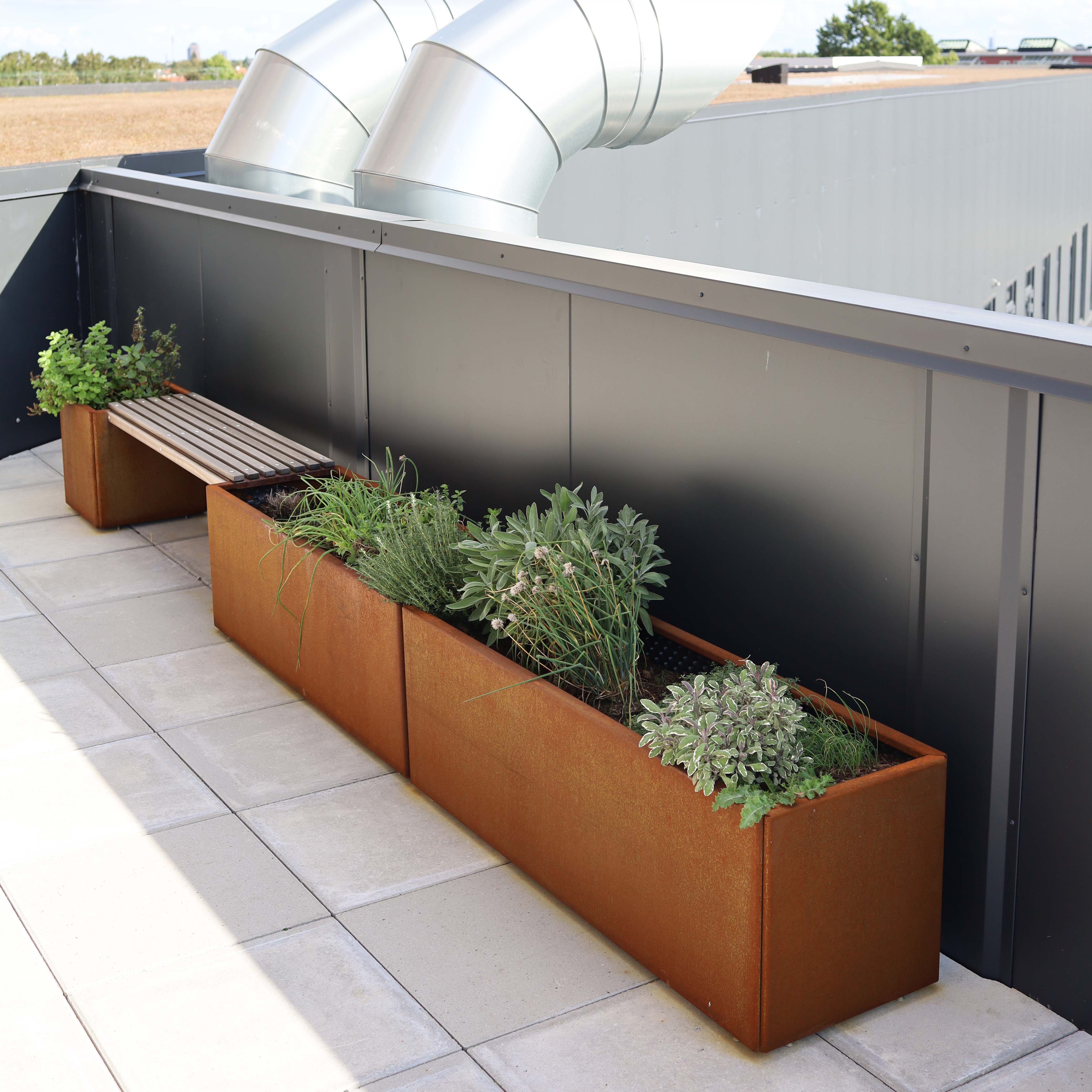 Land Modern blomlådor i cortenstål kombinerar funktionalitet och estetik på ett unikt sätt.