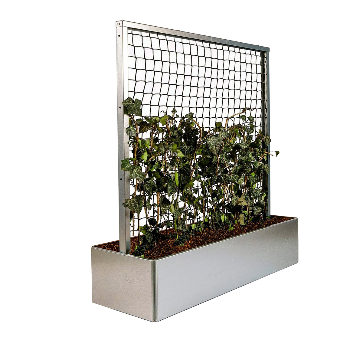 Komplett set med spaljé och blomlådor i galvaniserat stål