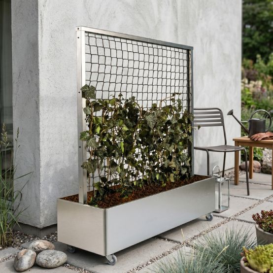 Behöver du skärma av runt altanen eller på balkongen är en spaljé med Land Classic blomlådor en enkel och grön lösning. Blomlådor/spaljén är i galvaniserat stål, som behåller sin vackra metallgrå färg många år framöver.