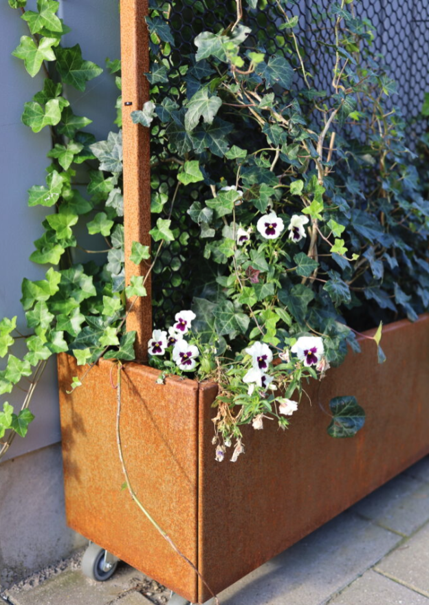 Modern plantekasse corten rust 40 x 120 cm m. espalier 180 c