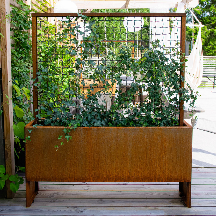 Modern plantekasse corten rust 30 x 120 cm m. espalier 140 c